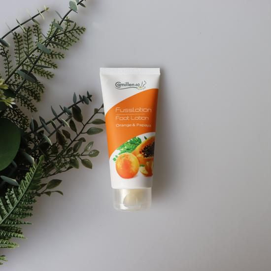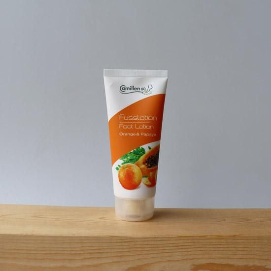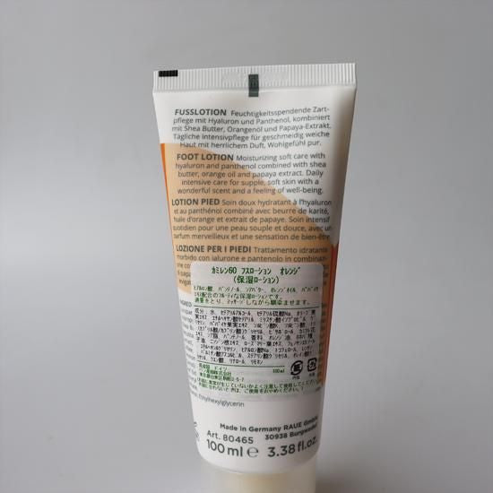 オレンジオイル、パパイヤエキス、ヒアルロン酸、パンテノール、シアバター配合のフルーティーな保湿ローション。