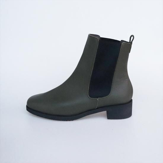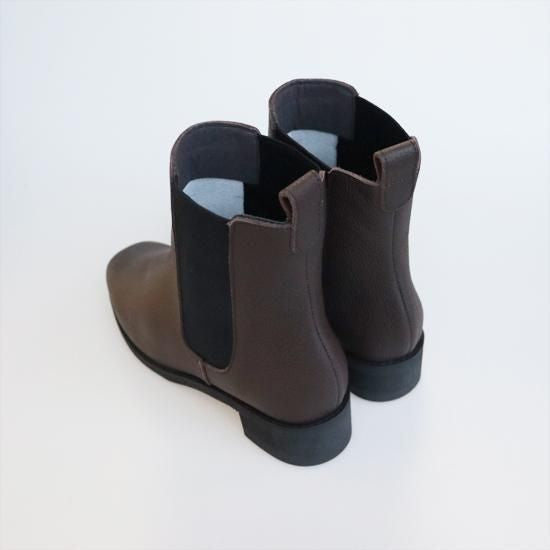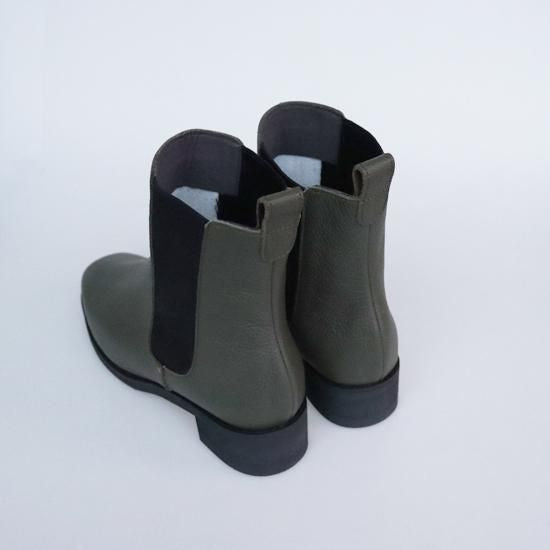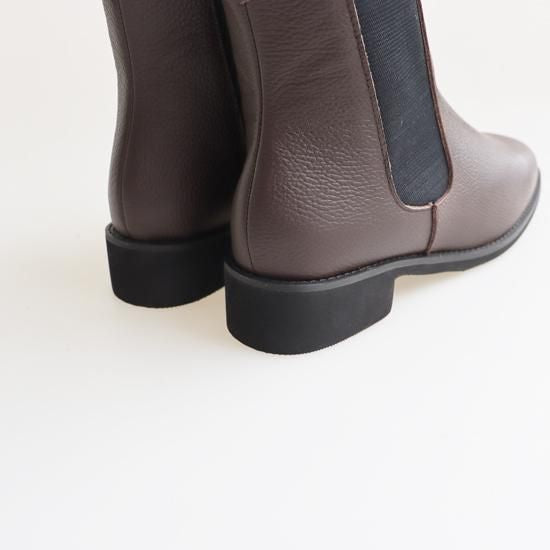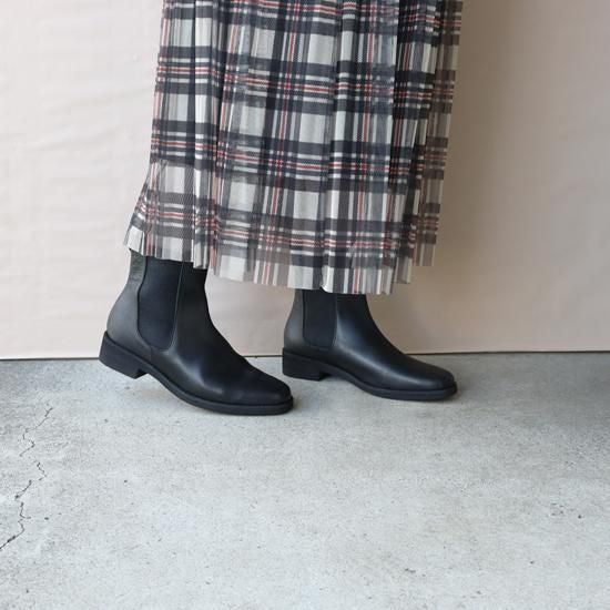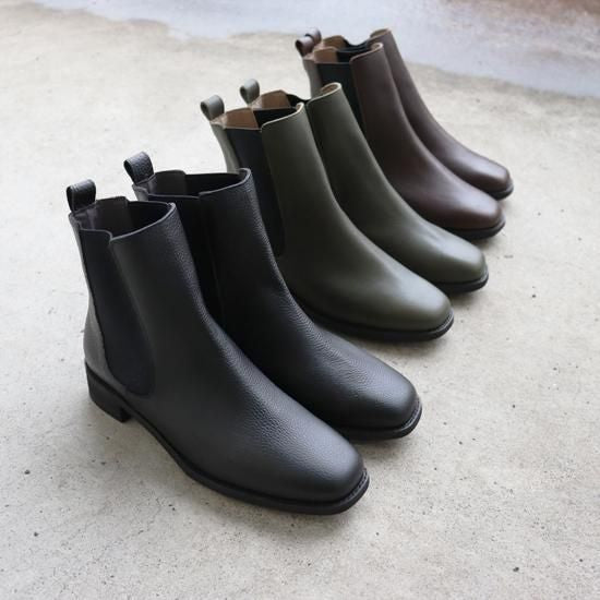 横、正面から見た時もシルエットが綺麗で足首が細く見えます。大人な雰囲気のサイドゴアブーツで店頭でも毎年ファッションの系統や年代を問わずに大人気のブーツです。