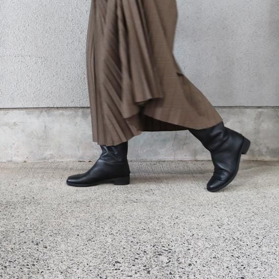 ゆったりとした筒周りながらも脚がより真っ直ぐ美しく見えるブーツを目指し何度も試着と修正を重ね完成しました。