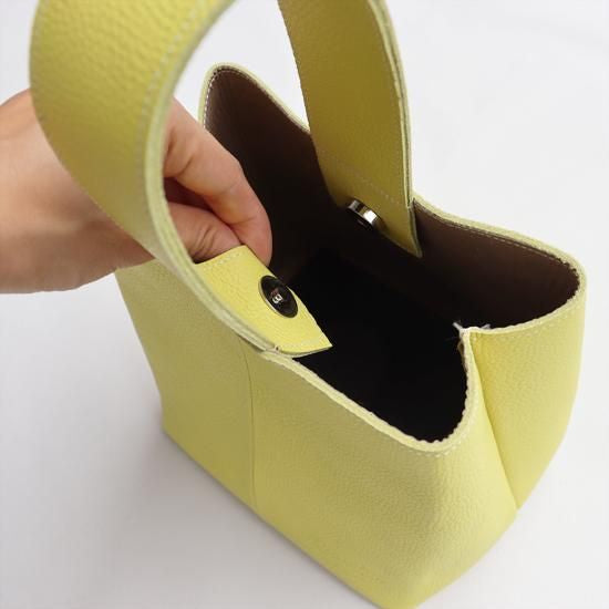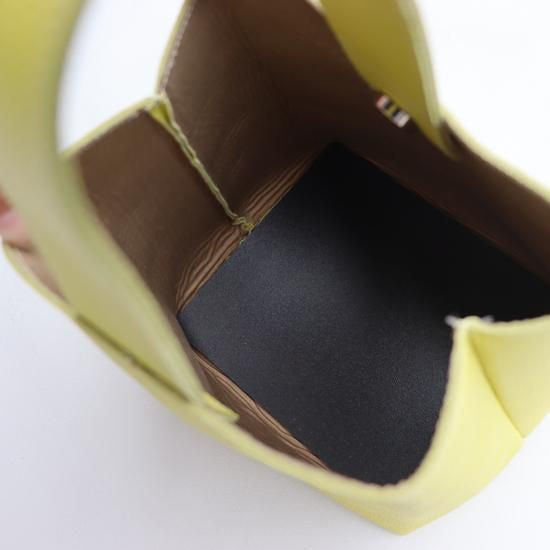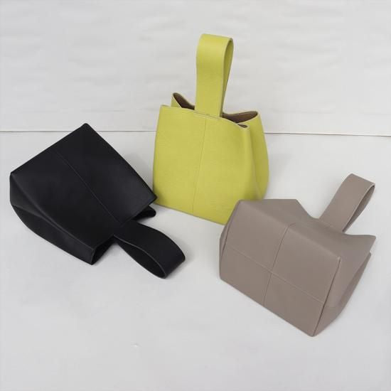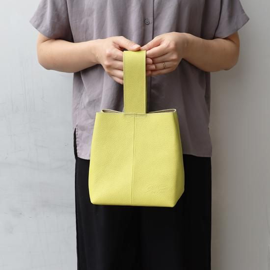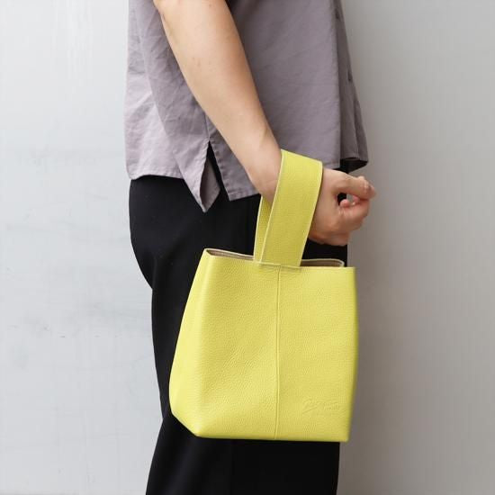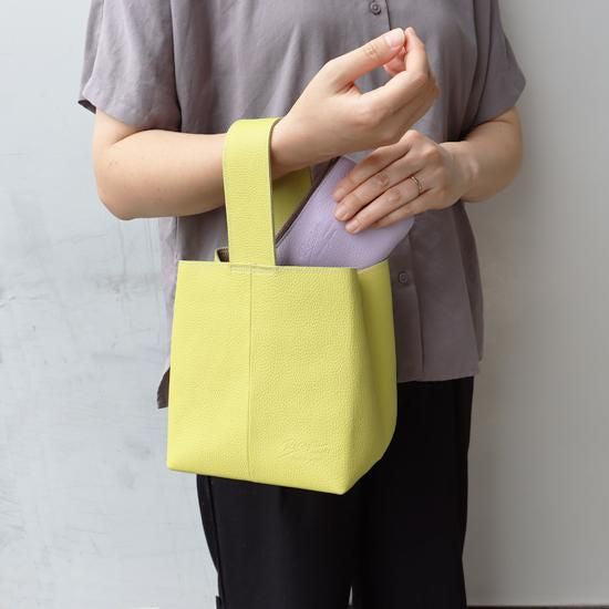 サイコロのようなフォルムが愛らしいハンドバッグ。