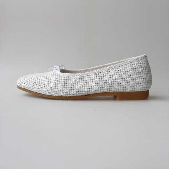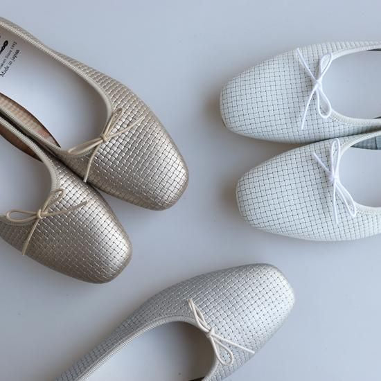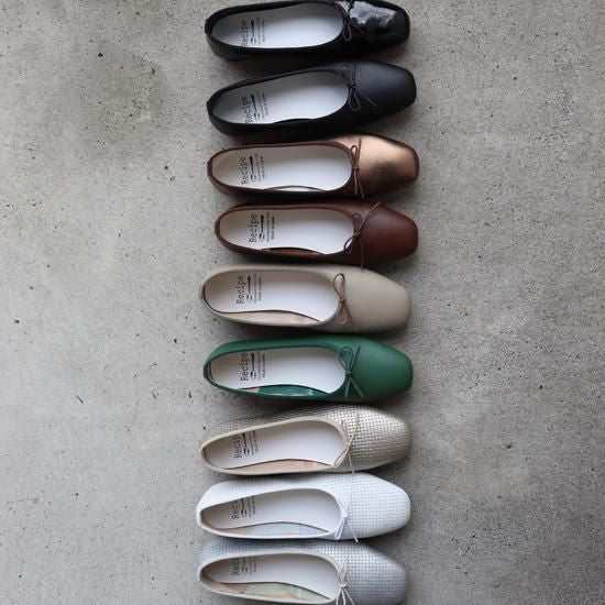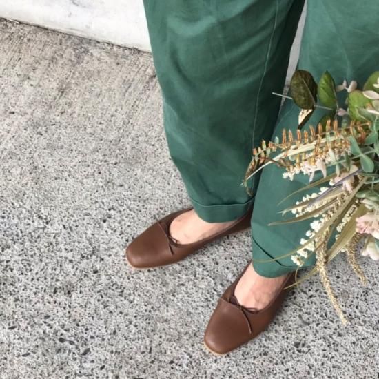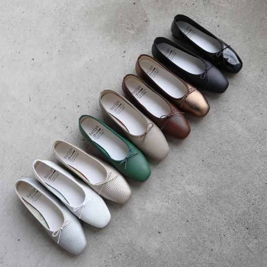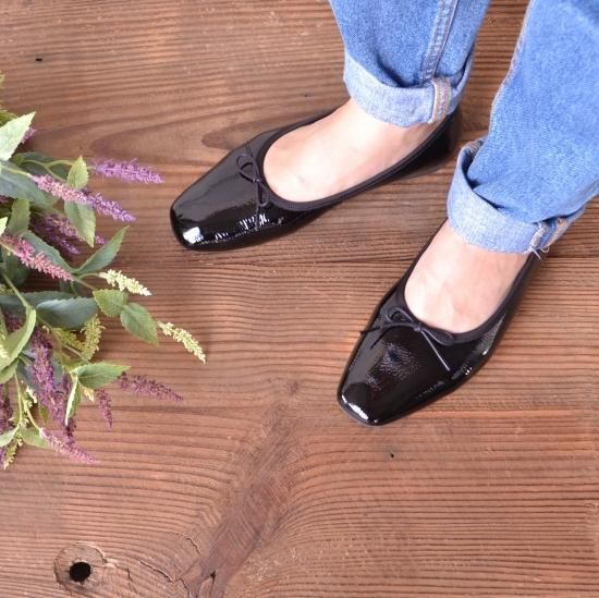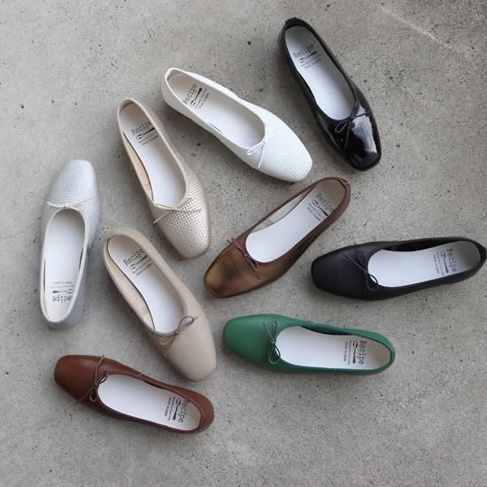 様々なテイストと合わせやすいスクエアトゥのバレエシューズ