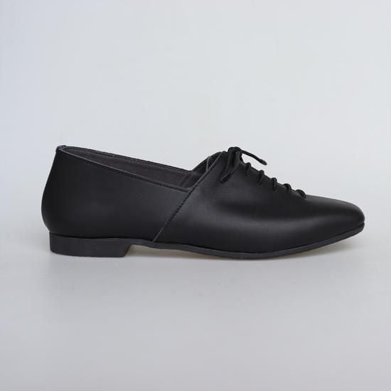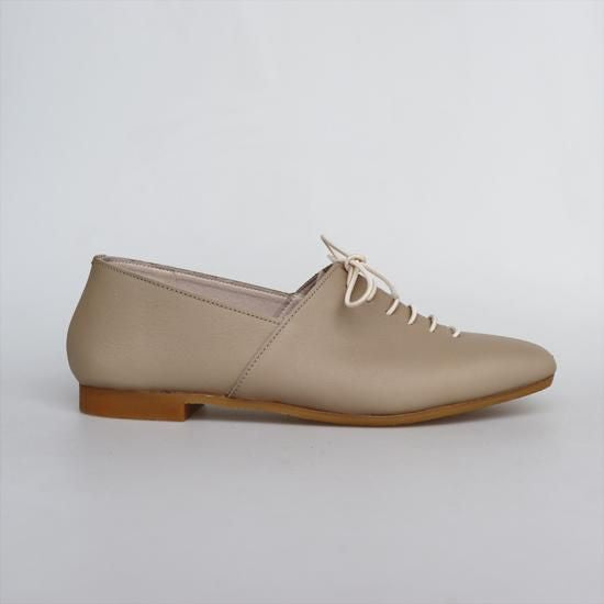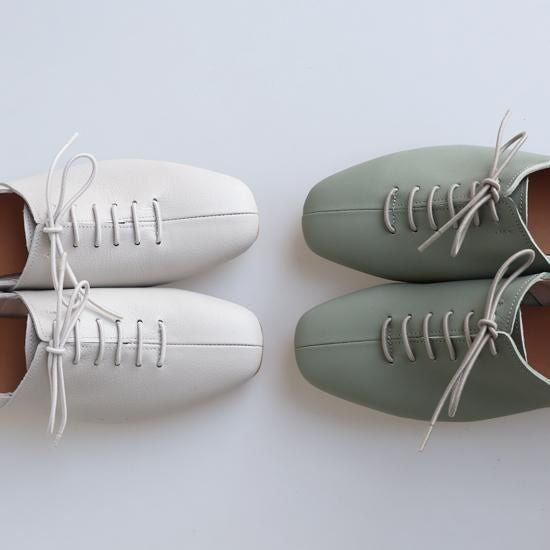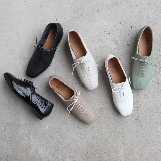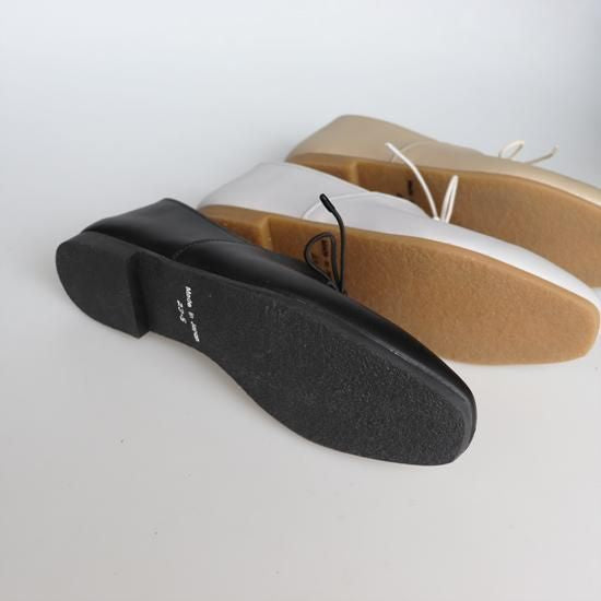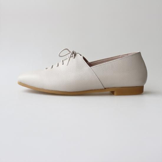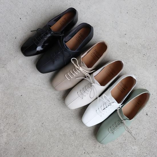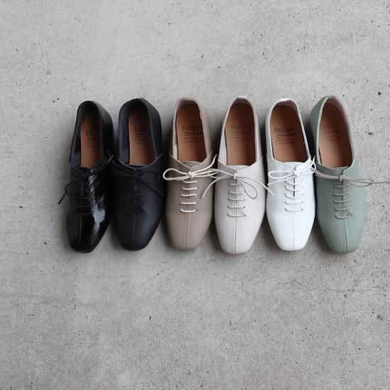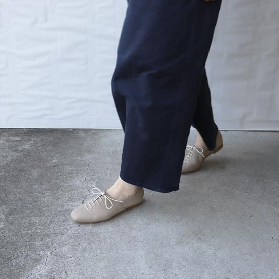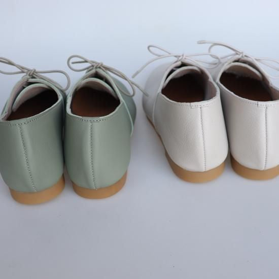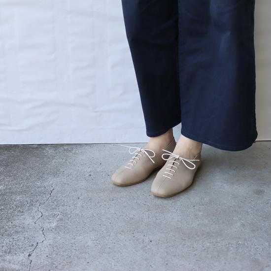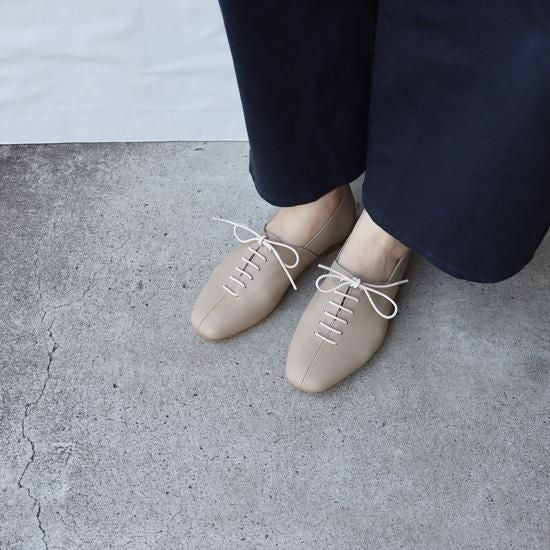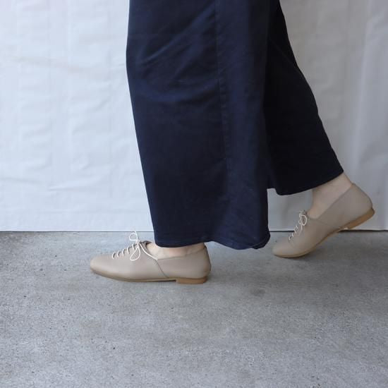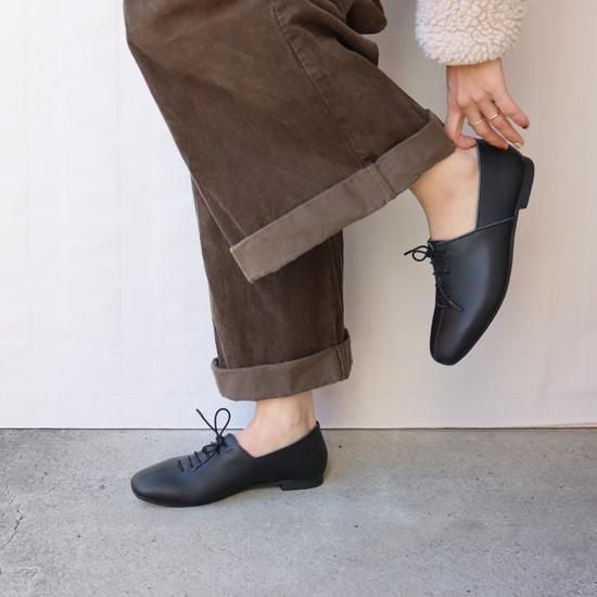 24cmでぴったり!薄手のフットカバーやストッキングでも踵がパカパカしにくい抜群のフィット感。ヒモもゴム仕様なので靴ベラでするっと入ります。レースアップシューズはトラッドになりがちですが、スクエアトゥとセンターシームですっきり可愛い印象。スカートやワンピースにも合わせやすいと思います。