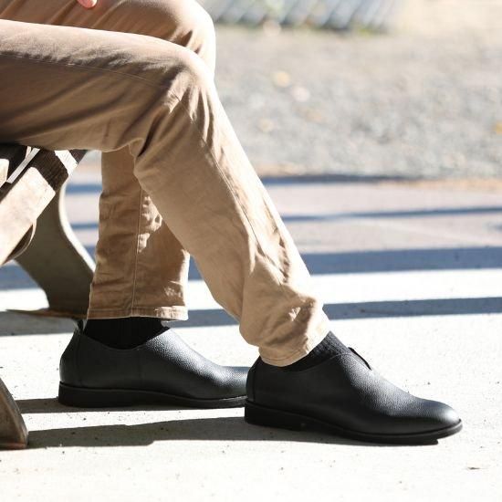 脱ぎ履きがスムーズなスリッポンタイプの革靴です。